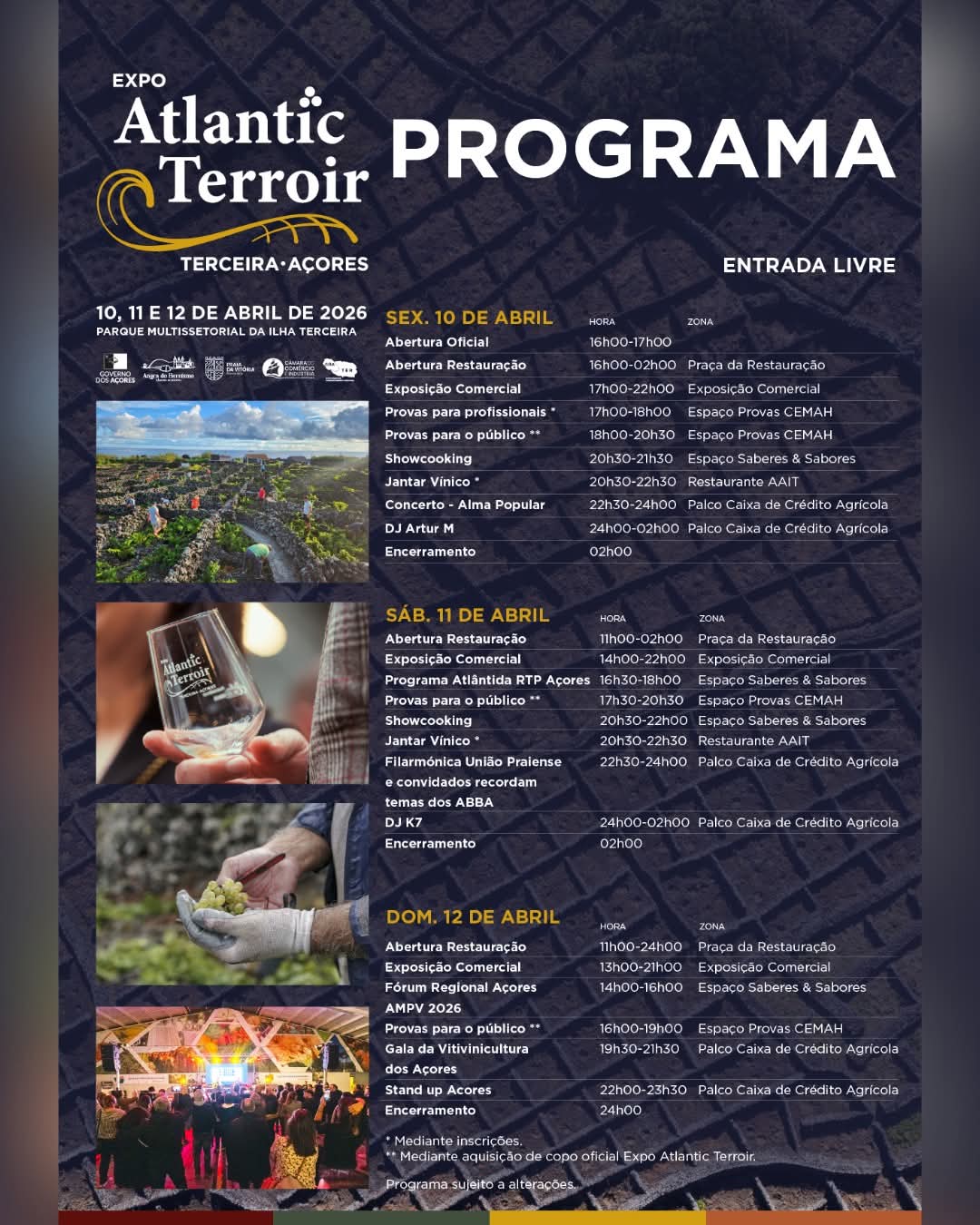 A segunda edição da Expo Atlantic Terroir decorre entre os dias 10 e 12 de abril, no Parque Multissetorial da Ilha Terceira, em Angra do Heroísmo, reunindo produtores, especialistas e público em torno da promoção do vinho e da gastronomia atlântica.