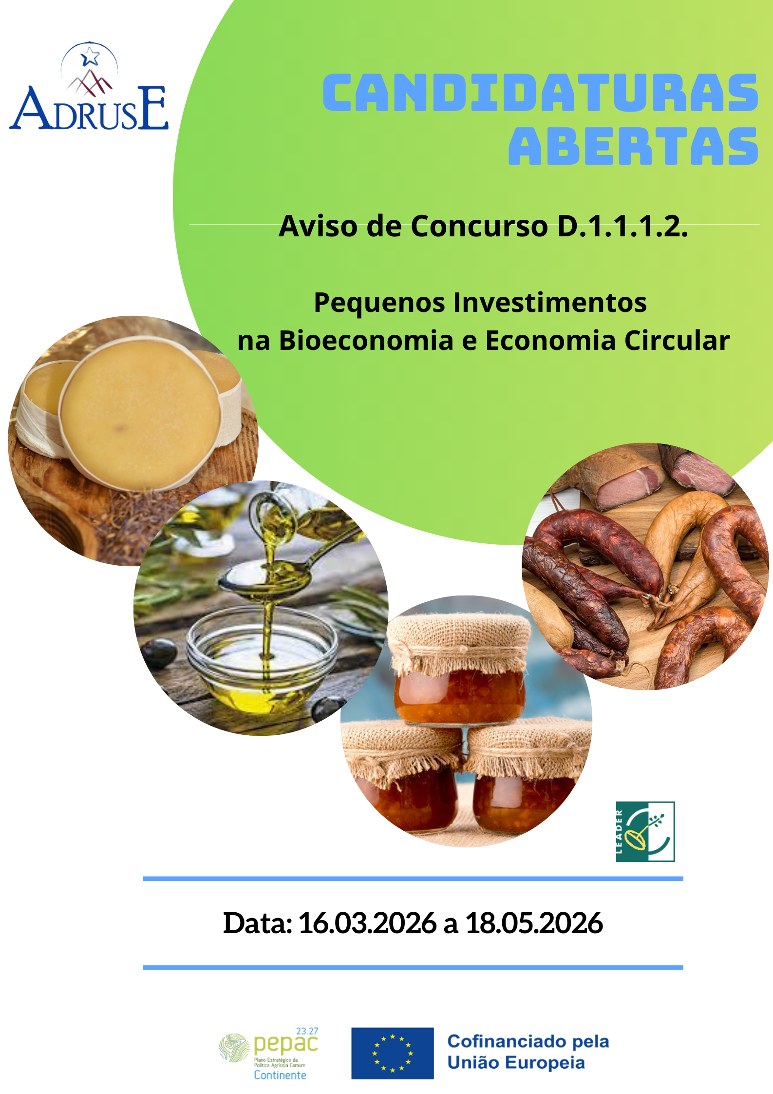 No âmbito da Medida “Desenvolvimento Local de Base Comunitária” do Plano Estratégico da Política Agrícola Comum no Continente (PEPACC), a ADRUSE -Associação de Desenvolvimento Rural da Serra da Estrela abre um aviso de concurso que enquadra a tipologia de intervenção “Pequenos Investimentos na Bioeconomia e Economia Circular”.