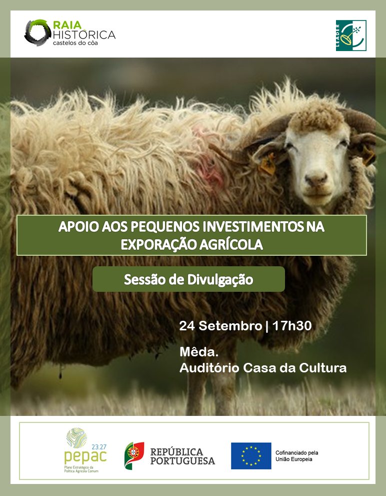 O GAL RAIA HISTÓRICA/Castelos do Côa convida todos os agricultores e outros interessados para uma sessão de informação sobre a intervenção "D.1.1.1.1 – Pequenos Investimentos na Exploração Agrícola" da medida do Desenvolvimento Local de Base Comunitária do PEPAC no Continente.