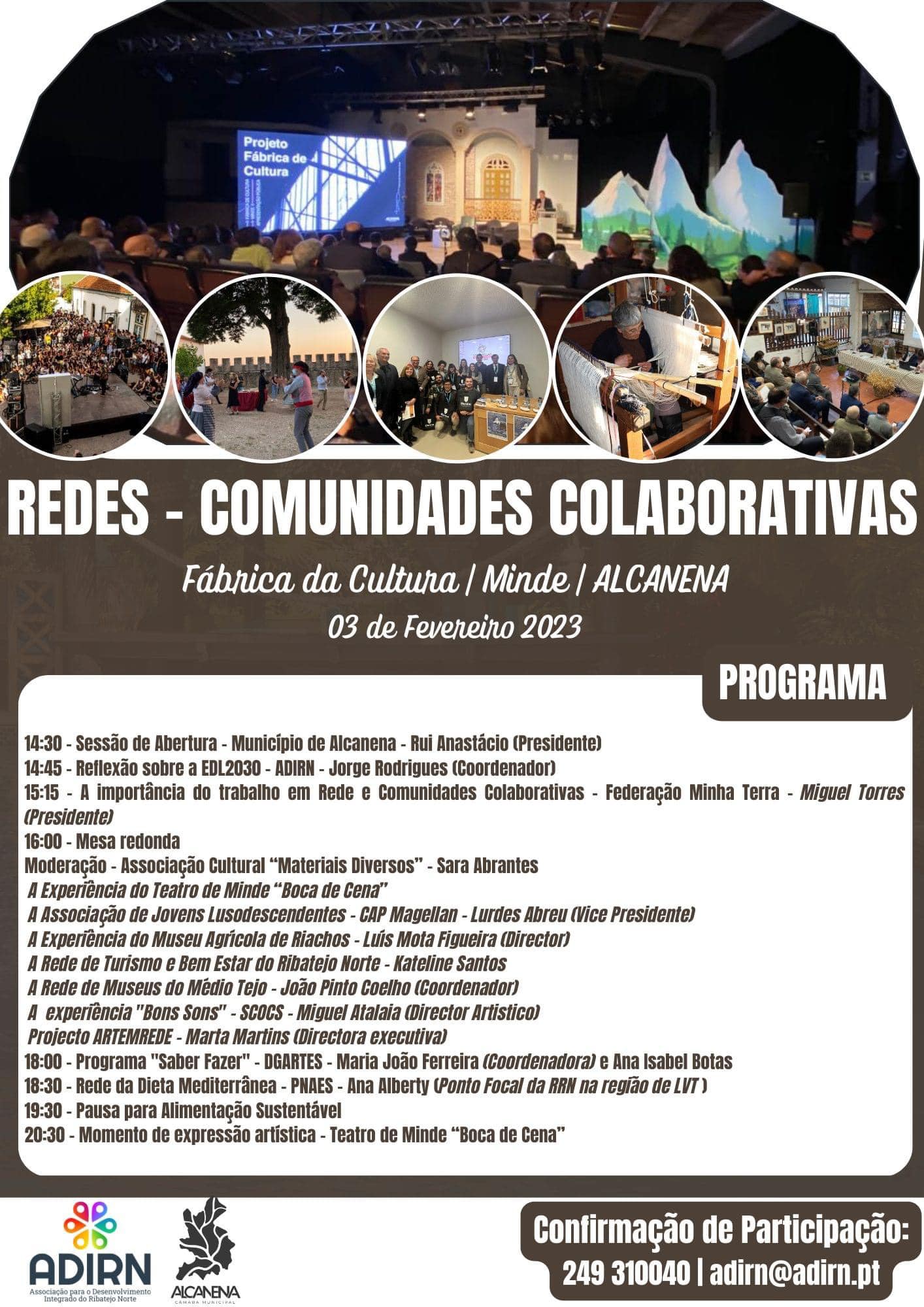 A ADIRN – Associação para o Desenvolvimento Integrado do Ribatejo Norte e o Município de Alcanena vão organizar, no dia 3 de fevereiro, pelas 14:30, na Fábrica da Cultura de Minde, a iniciativa “REDES – Comunidades Colaborativas”.