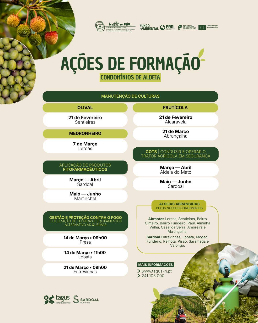 A TAGUS e o Município do Sardoal, através do seu Gabinete Técnico Florestal, vão realizar um conjunto de ações de formação, no âmbito do Programa Condomínios de Aldeia, a decorrer nas aldeias de Abrantes e Sardoal.