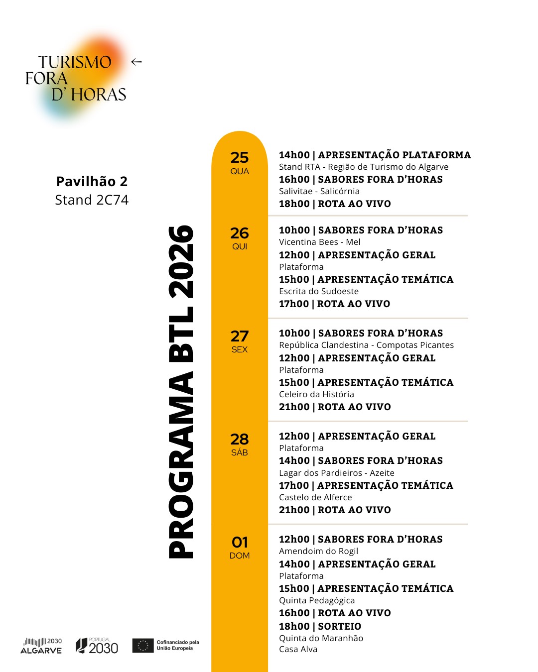 A Vicentina – Associação para o Desenvolvimento do Sudoeste vai estar presente na Bolsa de Turismo de Lisboa de 2026, que decorre entre os dias 25 de fevereiro e 1 de março, para divulgar a plataforma digital “Turismo Fora d’Horas”, reforçando a estratégia de valorização e dinamização dos territórios rurais do Barlavento Algarvio e Alentejo Interior.